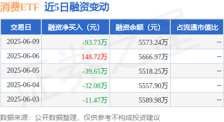 消费ETF:6月9日融资买入198万元,融资融券余额5573.24万元